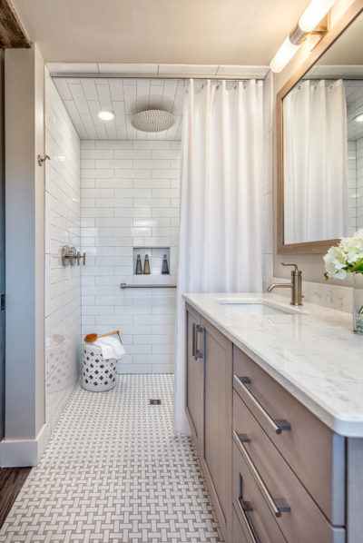 A curbless shower entrance minimizes your risk of tripping over a step as you enter the shower. It’s also a wheelchair-accessible feature.